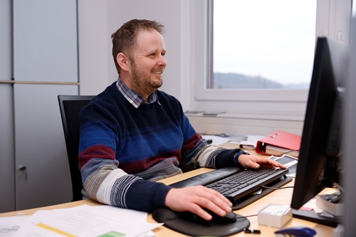 Obwohl Manuel Riedl einen Großteil seiner Arbeitszeit vor dem Computer verbringt, bemüht er sich, für sein Team am Platz präsent zu sein. Zumindest ein Rundgang täglich gehört zu seiner Routine.